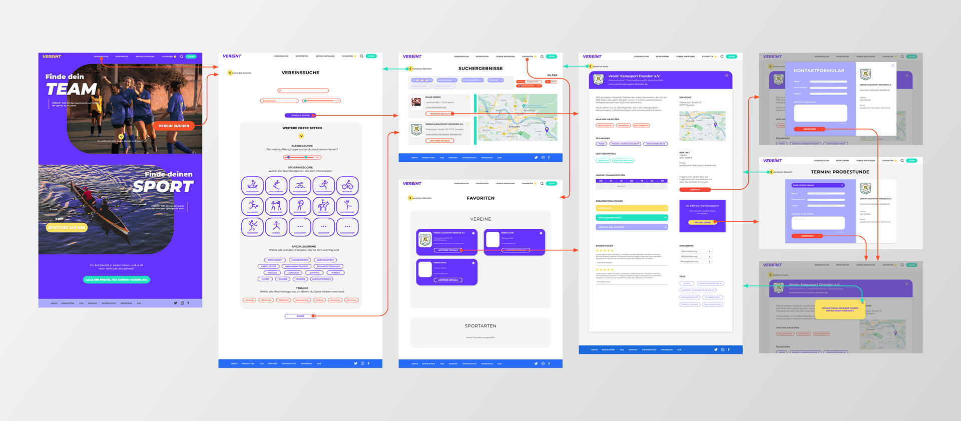 Neukonzeption einer Website für die vereinfachte Sportvereinsuche auf Basis der Grundprinzipien des nutzerzentrierten Design Prozesses. Das Projekt entstand im Kontext einer Weiterbildung für Basiswissen UI/UX Design mit Adobe XD in Gruppenarbeit.